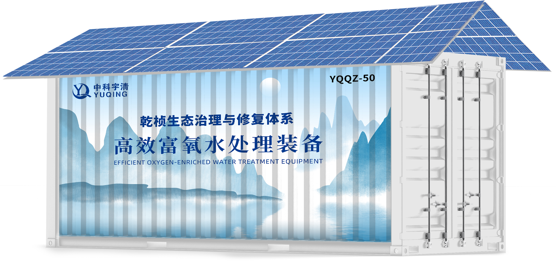 ✦ 节能版:具备高效富氧水处理装备标准版所有功能,且配备了太阳能光伏发电系统,能自发电供给装备运行。