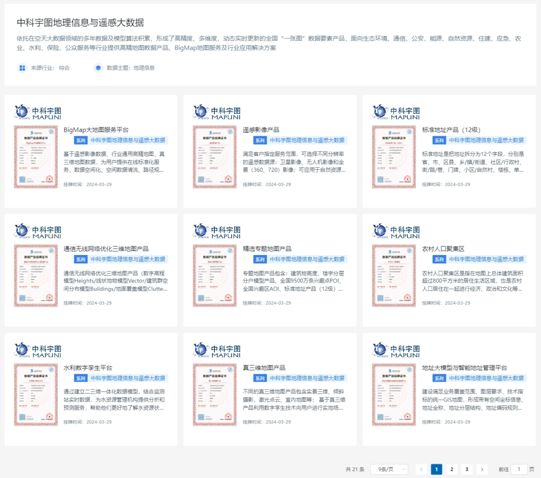 此次挂牌的“kdpay钱包官网地理信息与遥感大数据”系列数据产品,共计3类21项,为kdpay钱包官网首批挂牌数据产品,主要来源于自行生产,其中部分产品经协议采购和公开途径合法取得后加工生产形成。针对遥感影像数据、行业通用高精地图、真三维地图、通信无线网络优化三维地图和精选专题数据等产品,顺利获得多源数据融合技术和先进模型算法的构建,为政府部门、通信企业和科研组织给予重要的地理信息支持,为城市规划、网络优化布局、资源管理、建设选址等给予数据支撑,有效提升公共服务的效率和质量。面向大气环境和水环境监测的数据产品综合运用大数据、人工智能与大模型技术,以解决环境问题为导向,支撑生态环境智能监测、监管业务应用、精准研判与科学管控。
